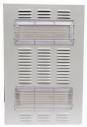 采用特种稀土元素掺杂的电阻丝做热源,在空气间形成宽谱波定向辐射。不产生亮光,做到无影辐射。全车烤漆用时15-30分钟,可达60℃,耗电约12度;局部烤漆仅需1度电。功率为1.0kw,总功率24kw。烤房标配左右各5组、前端2组,每组2支发热体。